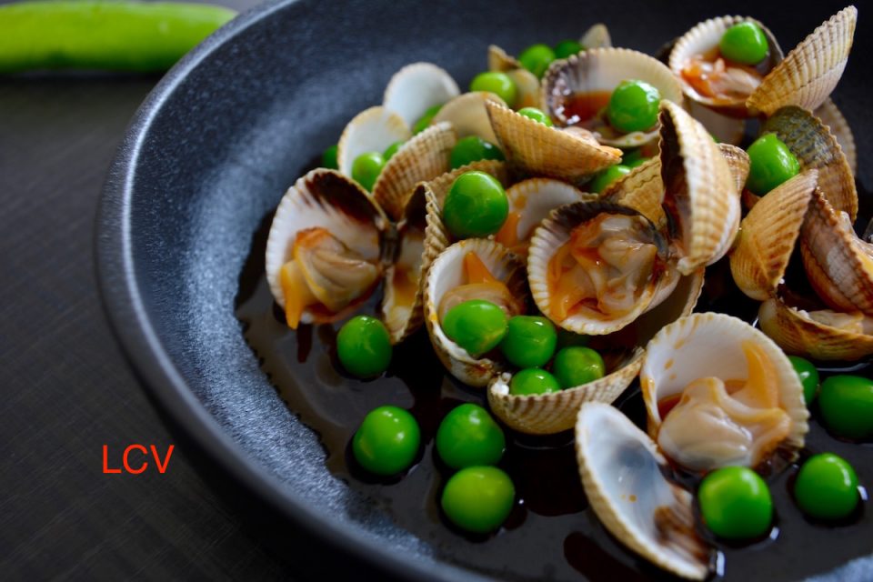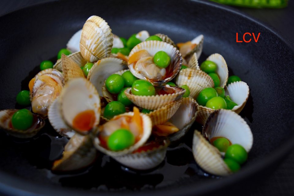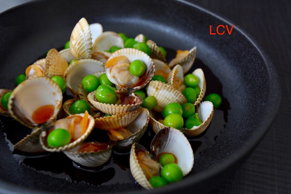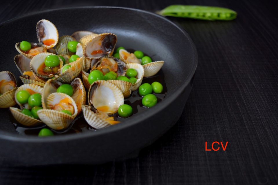 Nos encontramos ante un plato de los que se tarda más en buscar un nombre que en hacerlo. Probablemente por eso una vez que lo haces si no le pones nombre cae en el olvido hasta que alguien te lo recuerda. En este caso mi querida amiga Emma Sueiro me lo recordaba en uno de sus excelentes artículos que escribe como periodista gastronómica en el diario ABC. El caso, es que había venido a comer a casa y según ella, le preparé unos “Berberechos en un falso escabeche de Sriracha”. Ya no recuerdo muy bien si el nombre se lo puse yo, lo hizo ella, lo bautizamos a medias o fue todo un conjuro con las cervecitas preparando una paella en Miño. Lo verdaderamente importante es que ya tiene nombre y eso me encanta. Emma de inmediato le sacó a la salsa, hilo conductor del plato, esa suavidad de un AOVE de hojiblanca infusionado con laurel y pimentón de La Vera, ligeramente salado y con el toque ácido del vinagre y picante del chile que le aporta la Sriracha. Canalleo a tope con producto de temporada antes de la paella, que para seguir con el canalleo, la hicimos de chistorra. Recordando esa divertida y suculenta comida y aprovechando que los escabeches están de moda, me he atrevido a completarlo con unos guisantes de temporada. En principio me ha recordado a una especie de caldeirada pero por favor, Emma, ven pronto que sin nombre se me van a olvidar los platos.