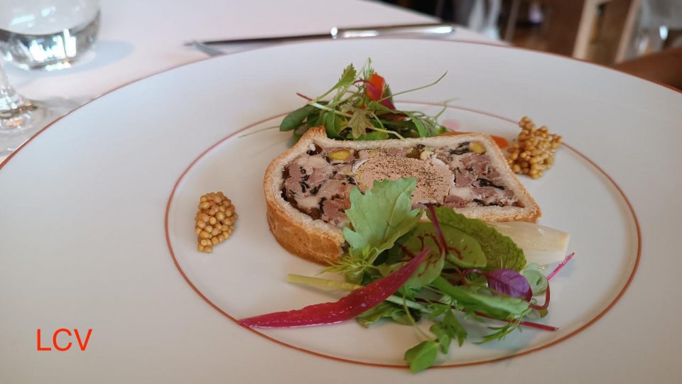 El paté en croûte con encurtidos es uno de los platos que refleja la variedad de carnes y el modo de conservarlas en las antiguas quintas. Fantástico.