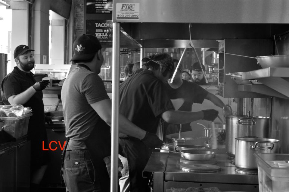 Alvin Cailan, al fondo a la derecha no levanta cabeza de los fogones