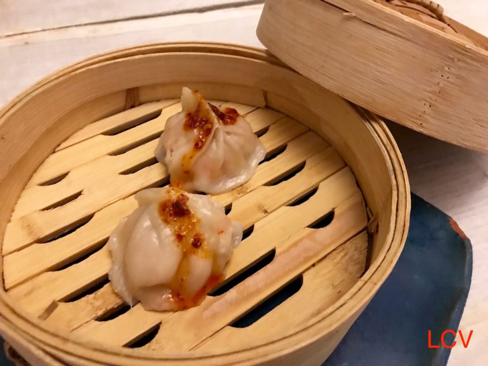 El Dumpling de gamba y panceta guarda una fusión espectacular de sabores en una fina masa al vapor en su punto. El chef mejora los que probó en Shanghái hace años.