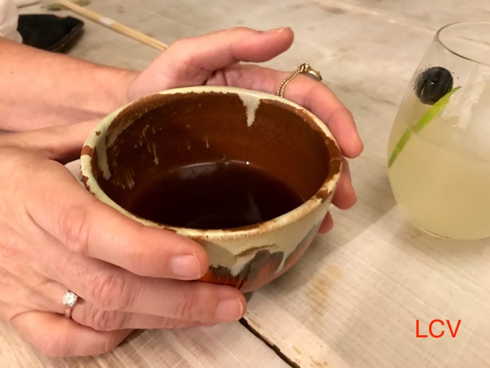 Comenzamos con una Sopa de cerdo con aleta de tiburón. Sabroso caldo con la sorpresa de la aleta al fondo que le da un interesante toque crujiente. Lo acompañamos de un cóctel llamado Perla negra, con toque frescos de jengibre, romero y cítricos.