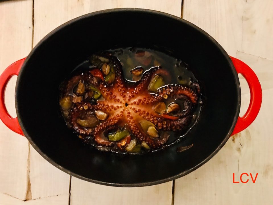 El resultado es un pulpo tierno y jugoso con una fusión de sabores capo-gallegos.