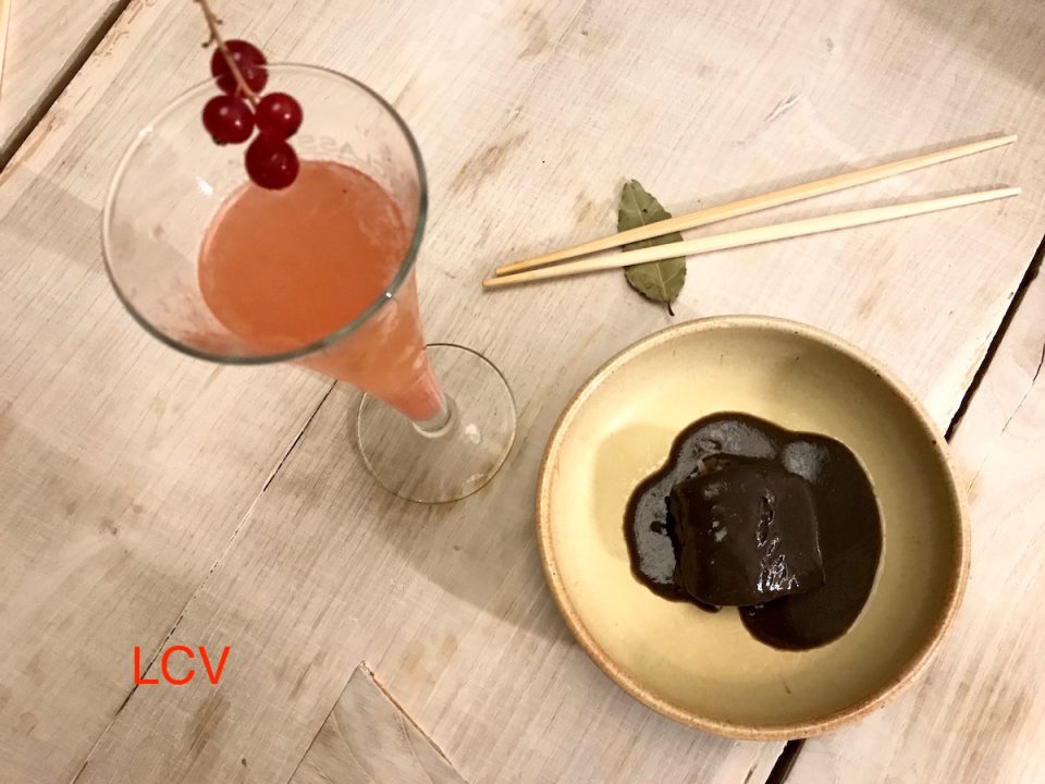 El cóctel Bosque animado nos sirvió para acompañar el pulpo y la lamprea. El champage y los frutos rojos combinan perfectamente con estos dos guisos con producto gallego de primerísima.
