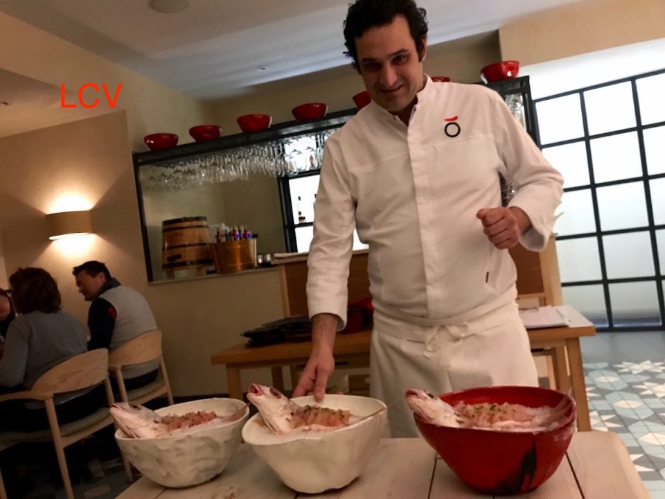 Espectacular este Sashimi de ollomol en caldeirada. Un corte de maestro del besugo para una fusión capo-gallega, fresca, actual y con un guiño a la tradición. Obligatorio pedirlo.