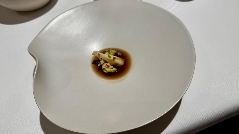 Cada plato es un paisaje sonoro y olfativo. Se perciben, ciertamente, aromas de tomillo, romero y aceite de oliva virgen extra, pero también “aires” de Jaén como el del viento sobre el olivar, la humedad de la tierra roja, la austeridad luminosa de la campiña. El chef actúa como un traductor de genios locales, interpretando la esencia de su entorno en una sinfonía donde las notas amargas como la de la endibia, de ciertas hierbas y de cortezas tostadas, aportan profundidad, contraste y una extraña melancolía gozosa.